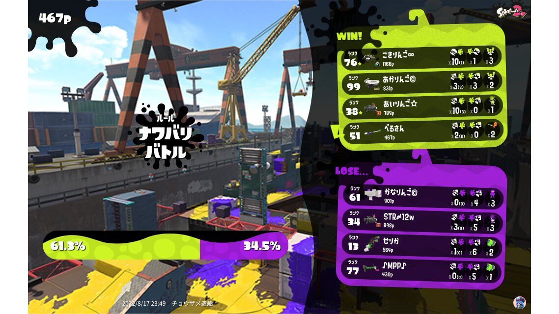| Mode | Turf War - Regular Battle | ||||||||||||||||||||||||||||||||||