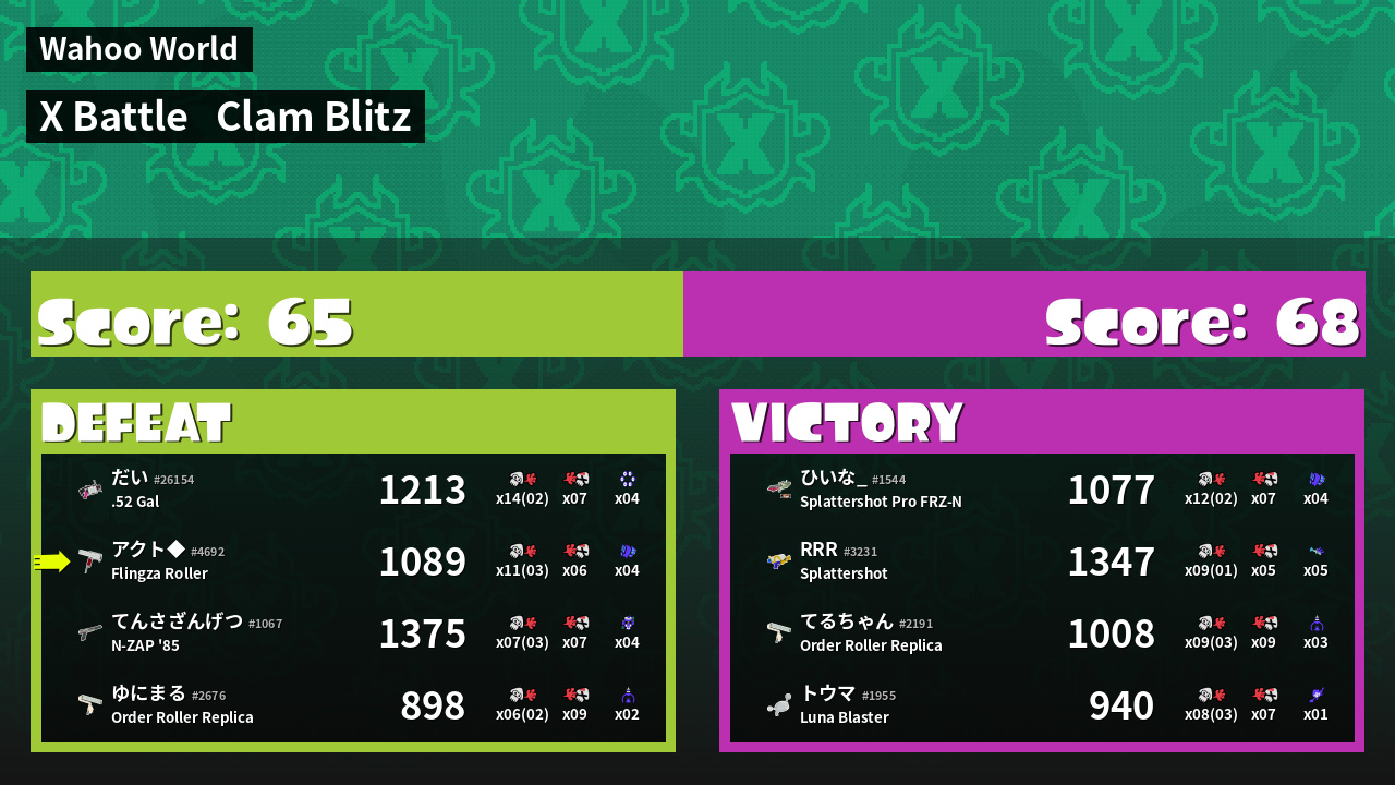 | Mode | Clam Blitz - X Battle |