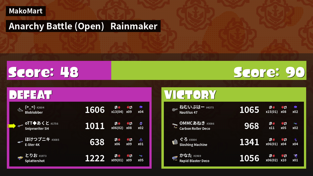 | Mode | Rainmaker - Anarchy Battle (Open) | ||
