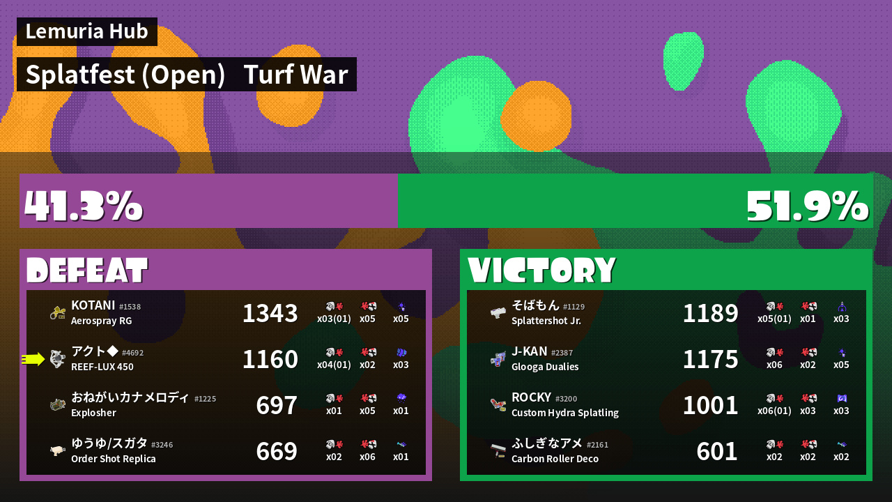 | Medals | #1 Overall Splatter #1 Home-Base Inker #1 Enemy Splatter |