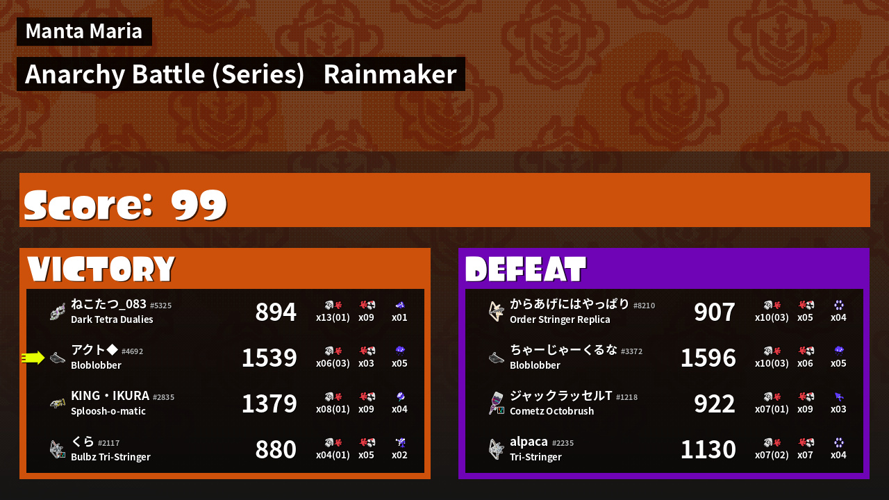 | Mode | Rainmaker - Anarchy Battle (Series) |