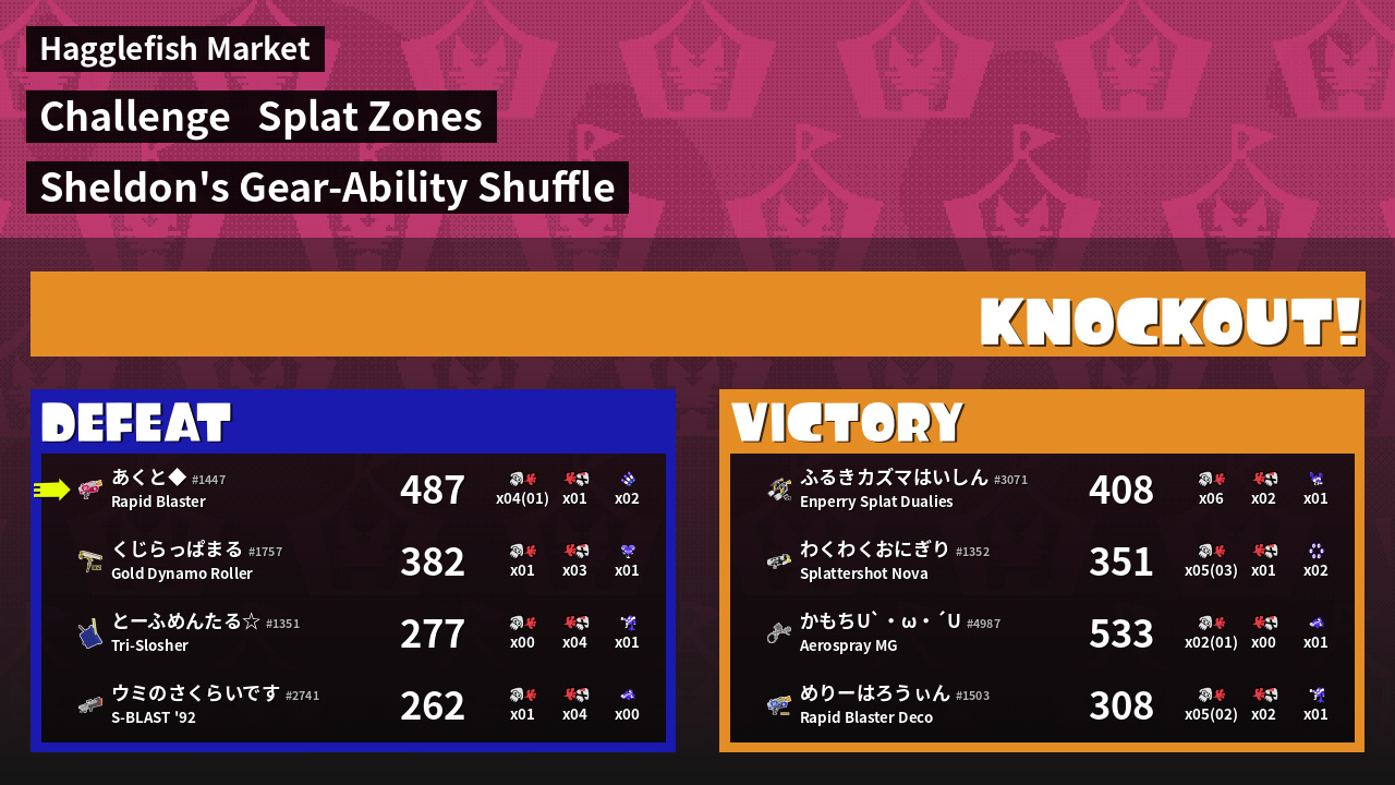 | Medals | #1 Overall Splatter #1 Turf Inker #1 Popular Target | ||