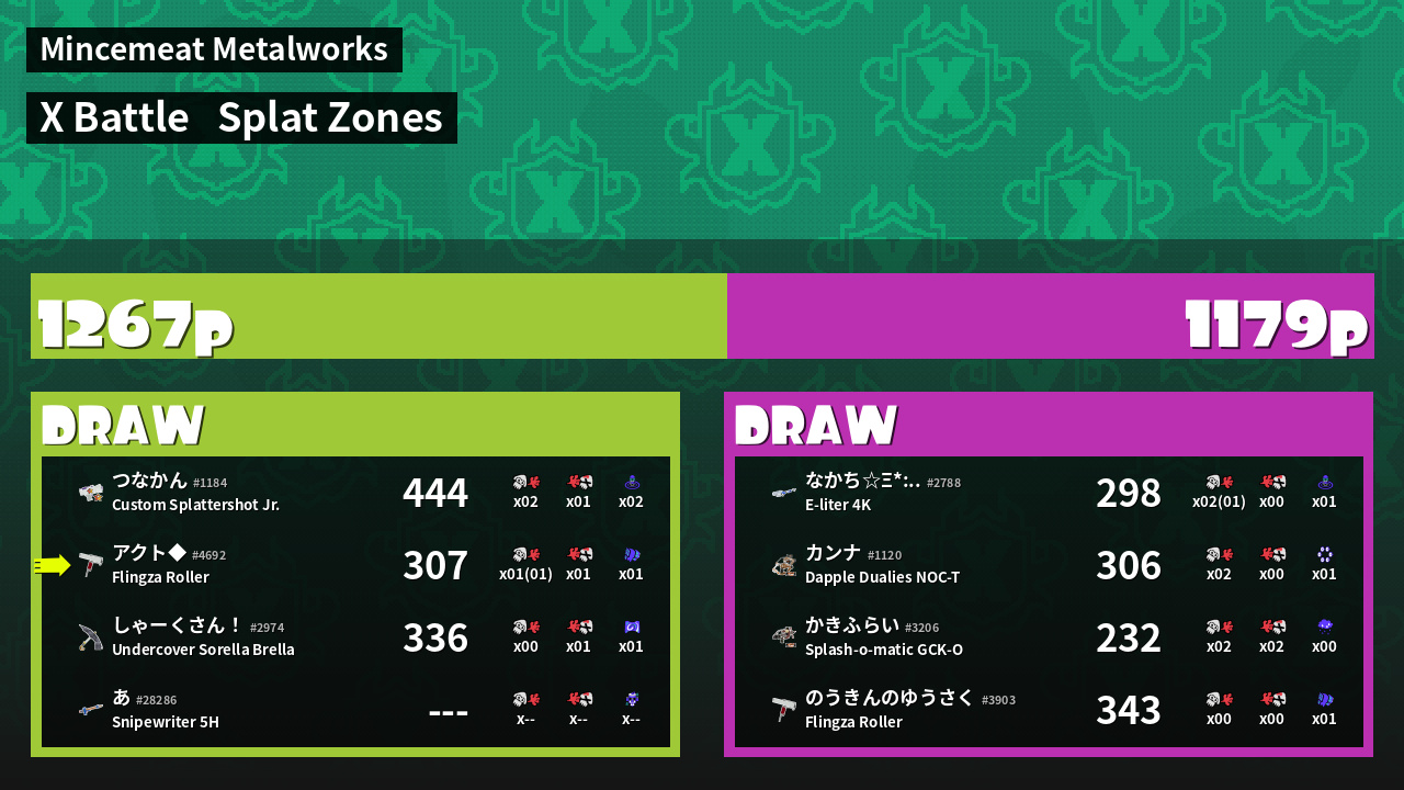 | Mode | Splat Zones - X Battle |