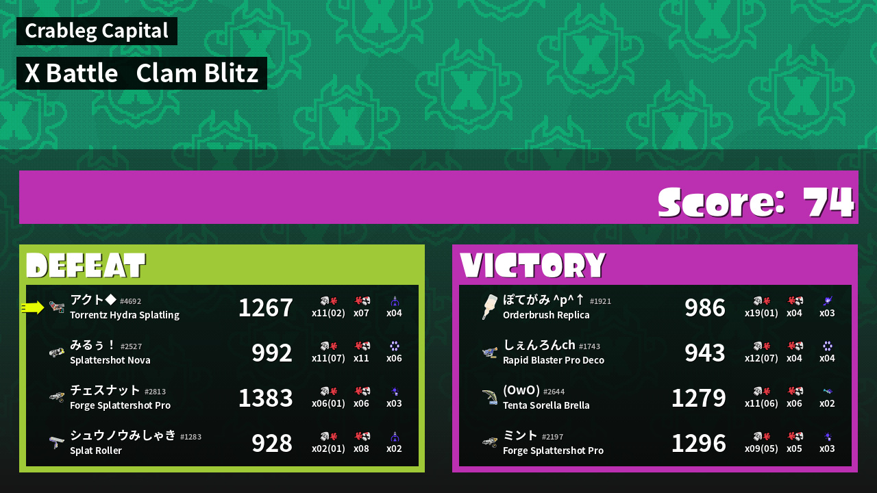 | Mode | Clam Blitz - X Battle |