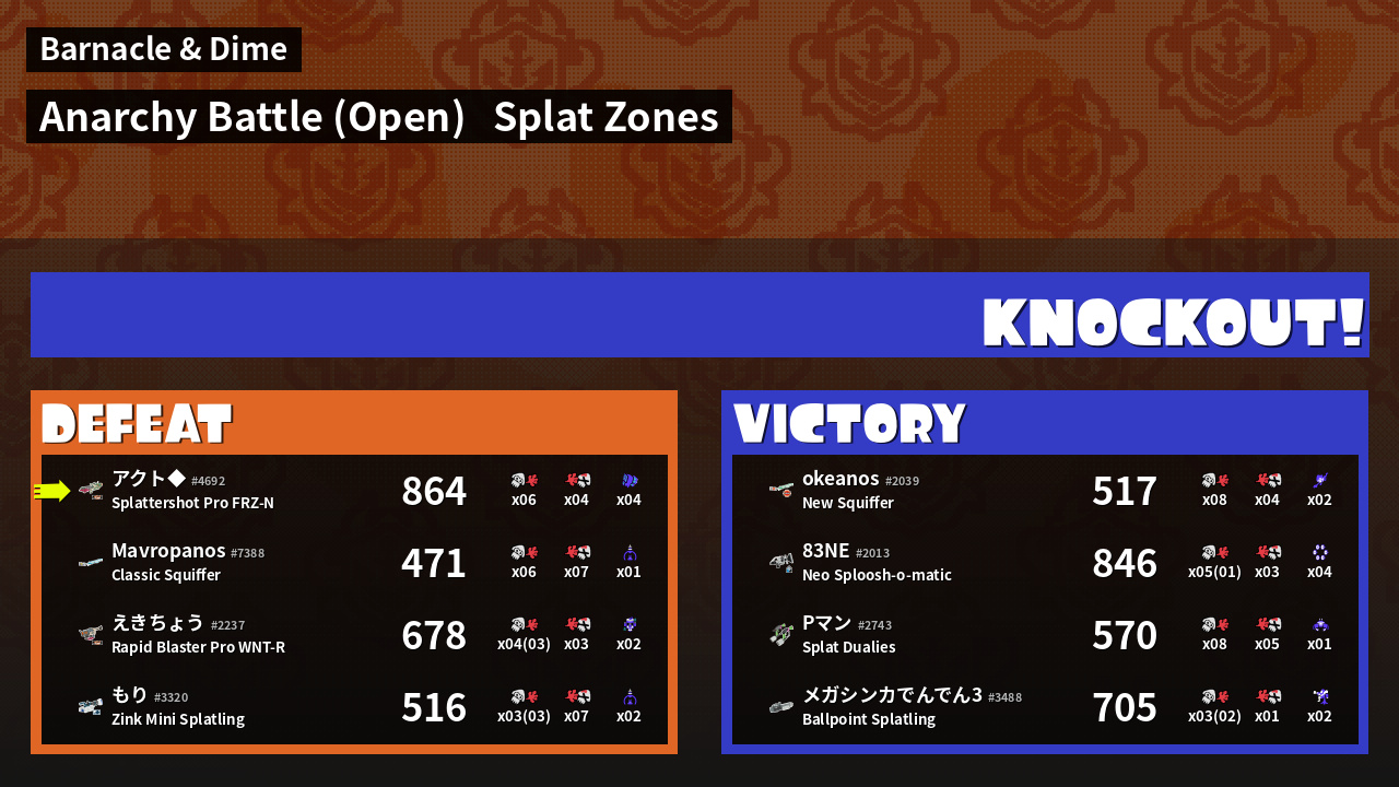 Results of あくと's Battle