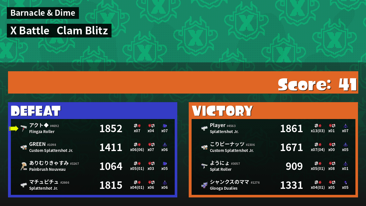 | Weapon | Flingza Roller ( Ink Mine / Tenta Missiles) |