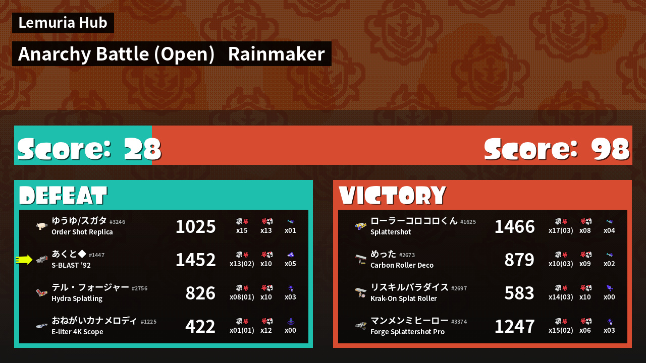 Kills / Deaths | 11 + 2 / 10 > Kill Ratio: 1.10 | ||