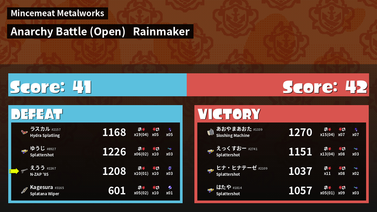 | Mode | Rainmaker - Anarchy Battle (Open) | ||