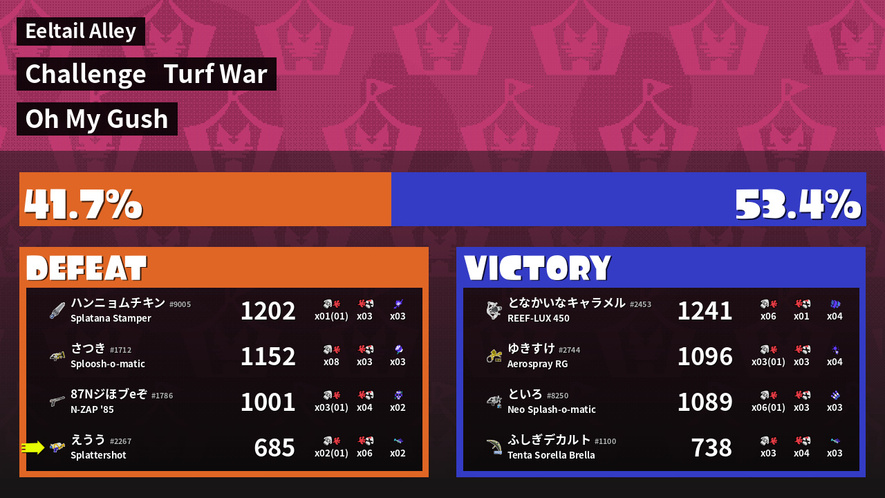 Kills / Deaths | 1 + 1 / 6 < Kill Ratio: 0.17 | ||