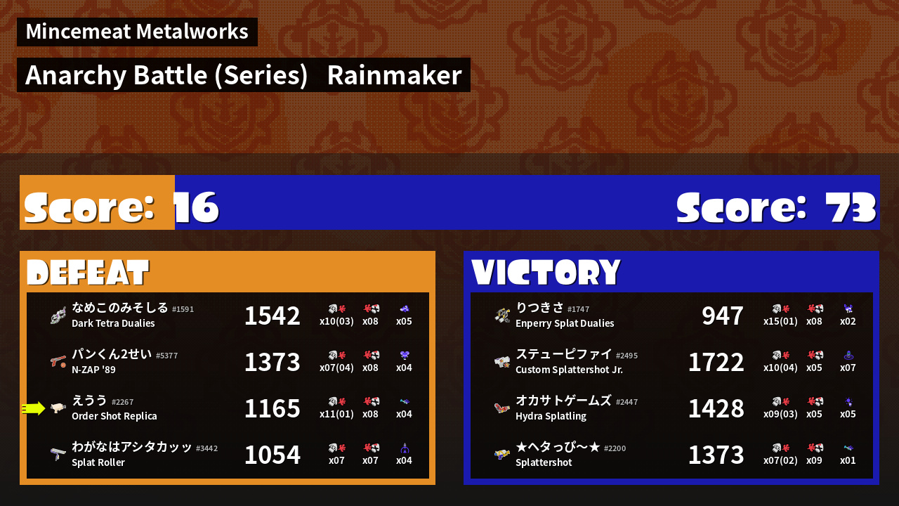 Kills / Deaths | 10 + 1 / 8 > Kill Ratio: 1.25 | ||
