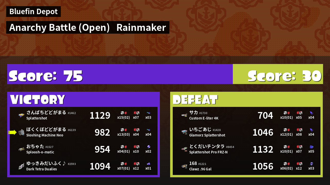 | Mode | Rainmaker - Anarchy Battle (Open) |