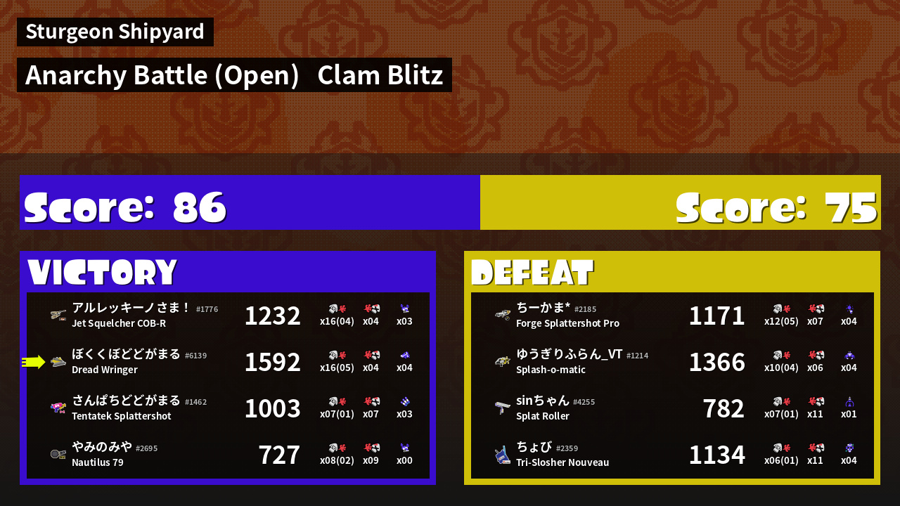 | Mode | Clam Blitz - Anarchy Battle (Open) |