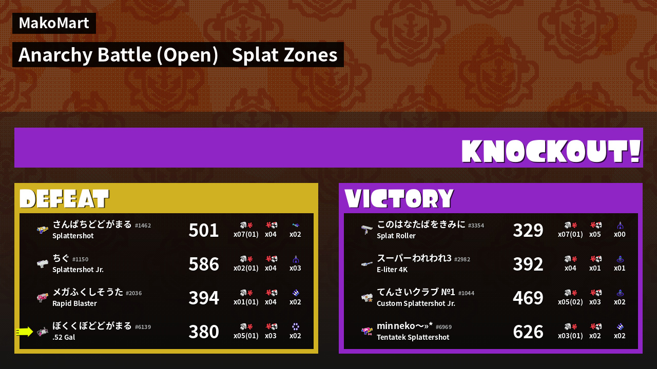 | Mode | Splat Zones - Anarchy Battle (Open) |