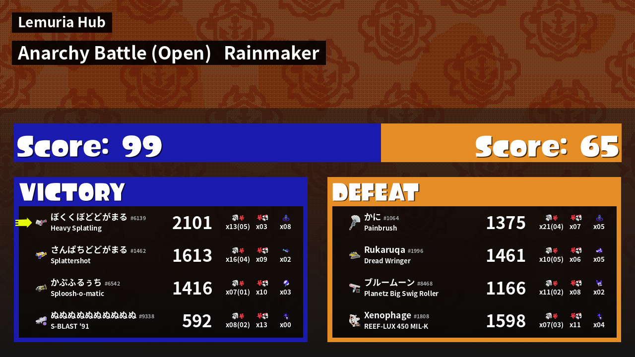 | Mode | Rainmaker - Anarchy Battle (Open) |