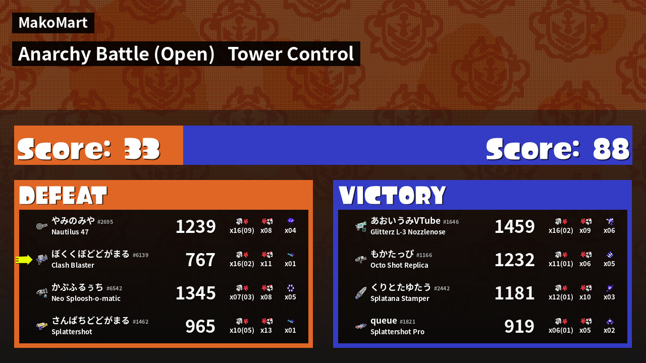 | Mode | Tower Control - Anarchy Battle (Open) |