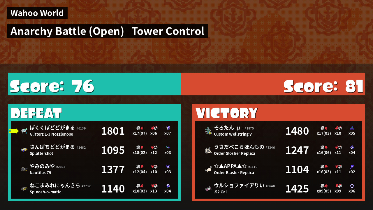 | Mode | Tower Control - Anarchy Battle (Open) |