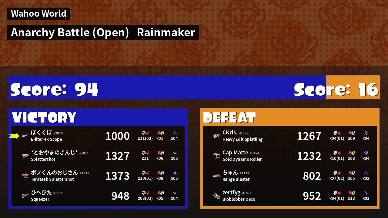 | Mode | Rainmaker - Anarchy Battle (Open) | ||