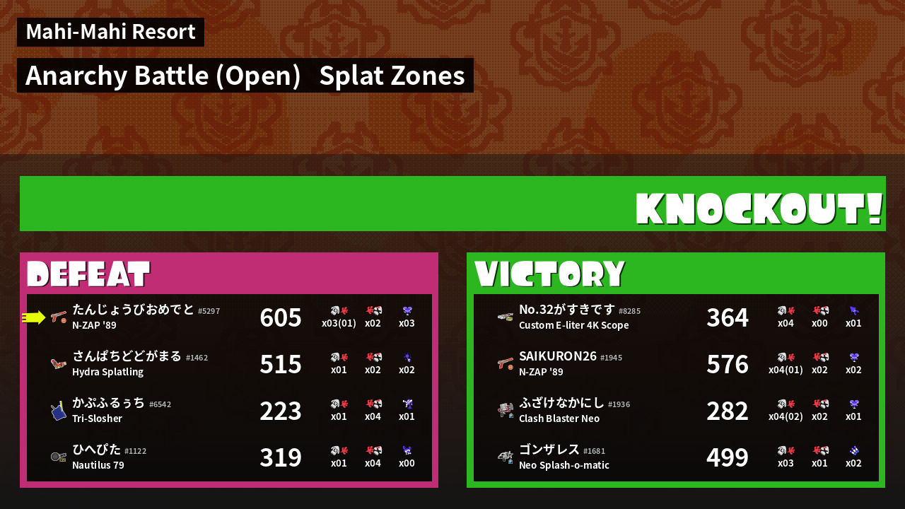 | Mode | Splat Zones - Anarchy Battle (Open) | ||
