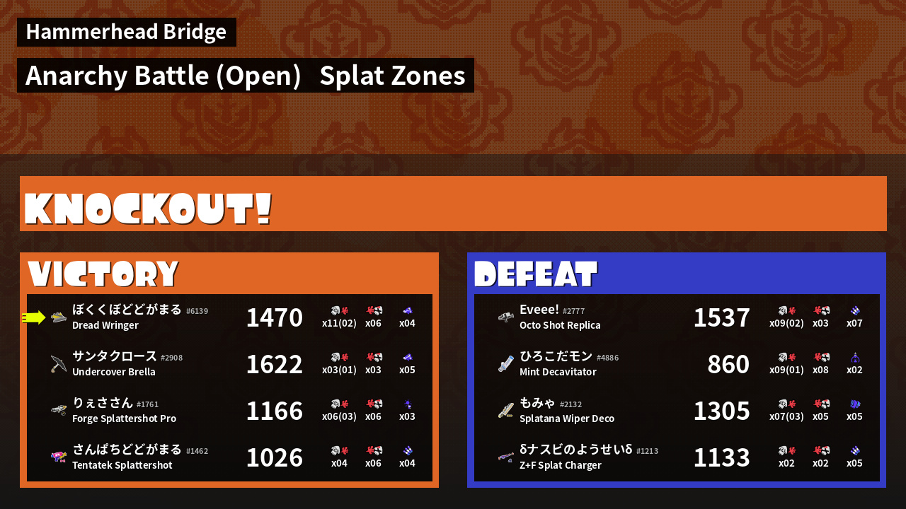 | Mode | Splat Zones - Anarchy Battle (Open) |