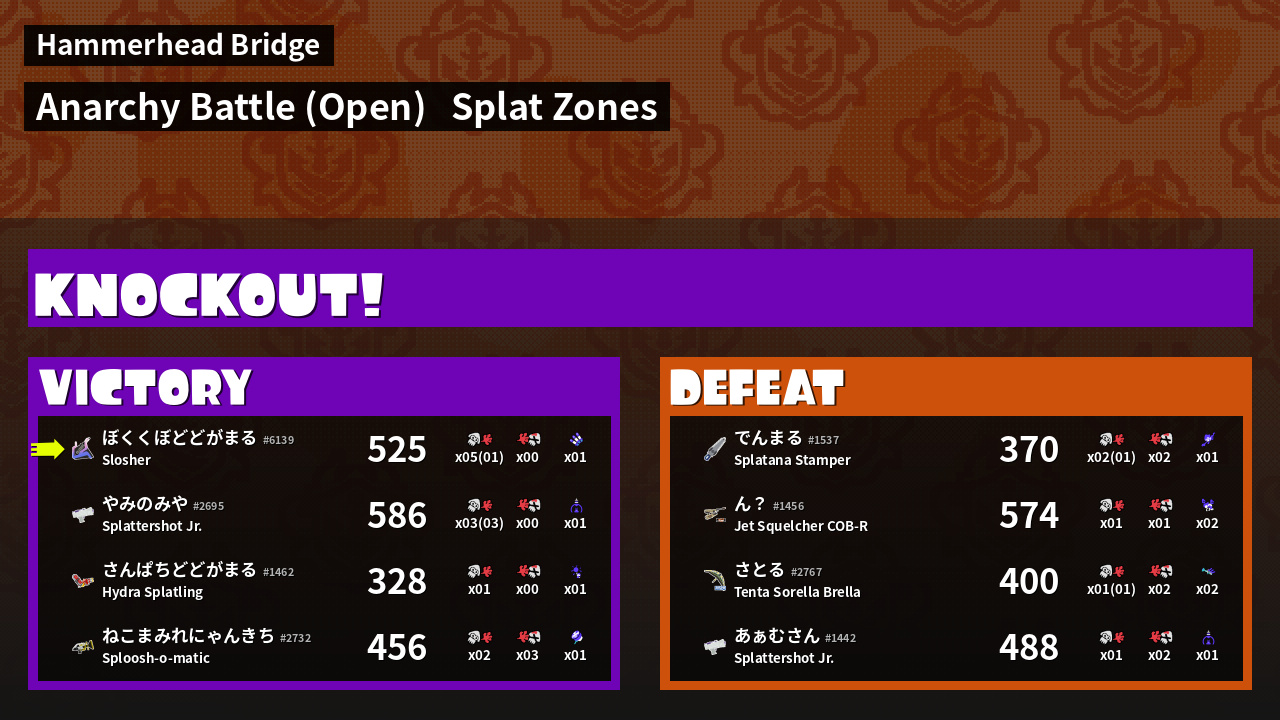 | Mode | Splat Zones - Anarchy Battle (Open) |
