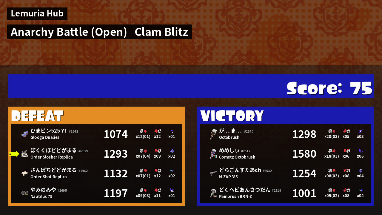 | Mode | Clam Blitz - Anarchy Battle (Open) |