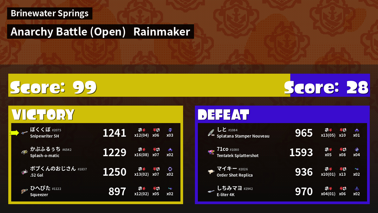 | Mode | Rainmaker - Anarchy Battle (Open) | ||