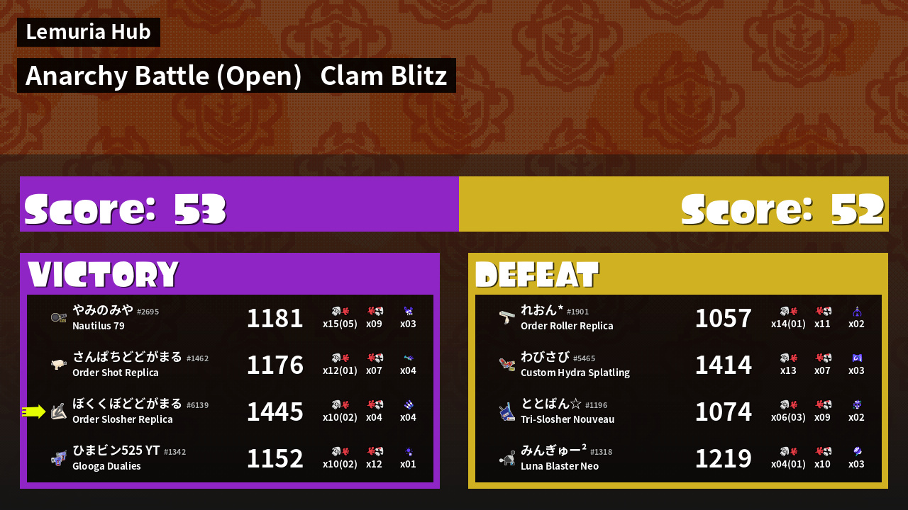 | Mode | Clam Blitz - Anarchy Battle (Open) |