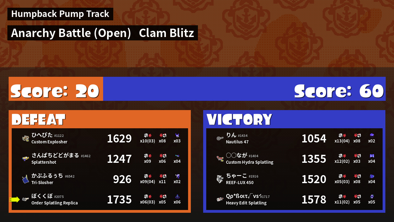| Mode | Clam Blitz - Anarchy Battle (Open) | ||