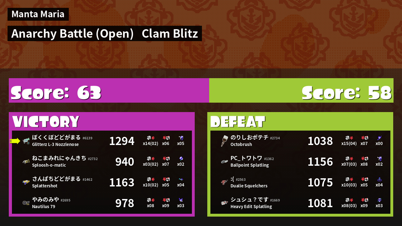 | Mode | Clam Blitz - Anarchy Battle (Open) |