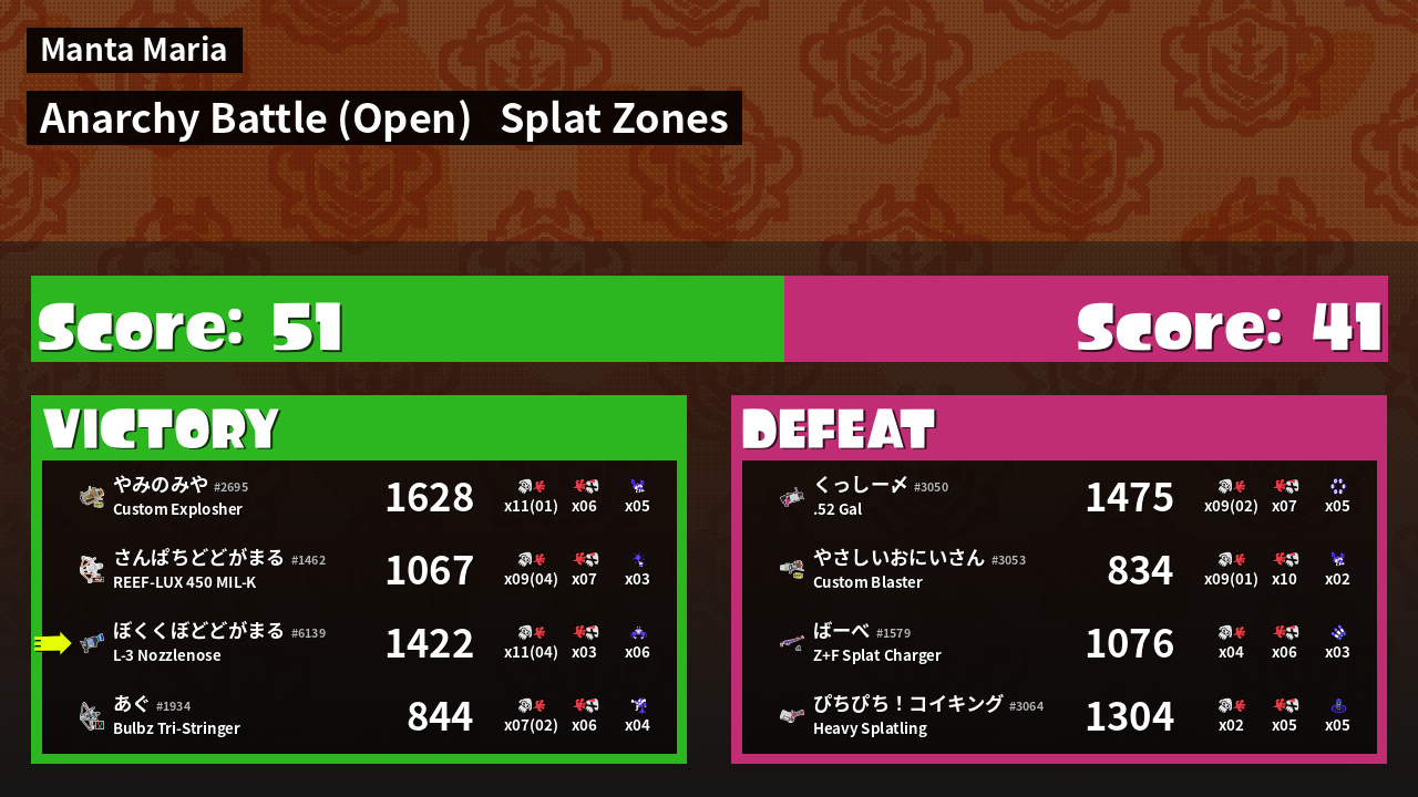 | Mode | Splat Zones - Anarchy Battle (Open) |