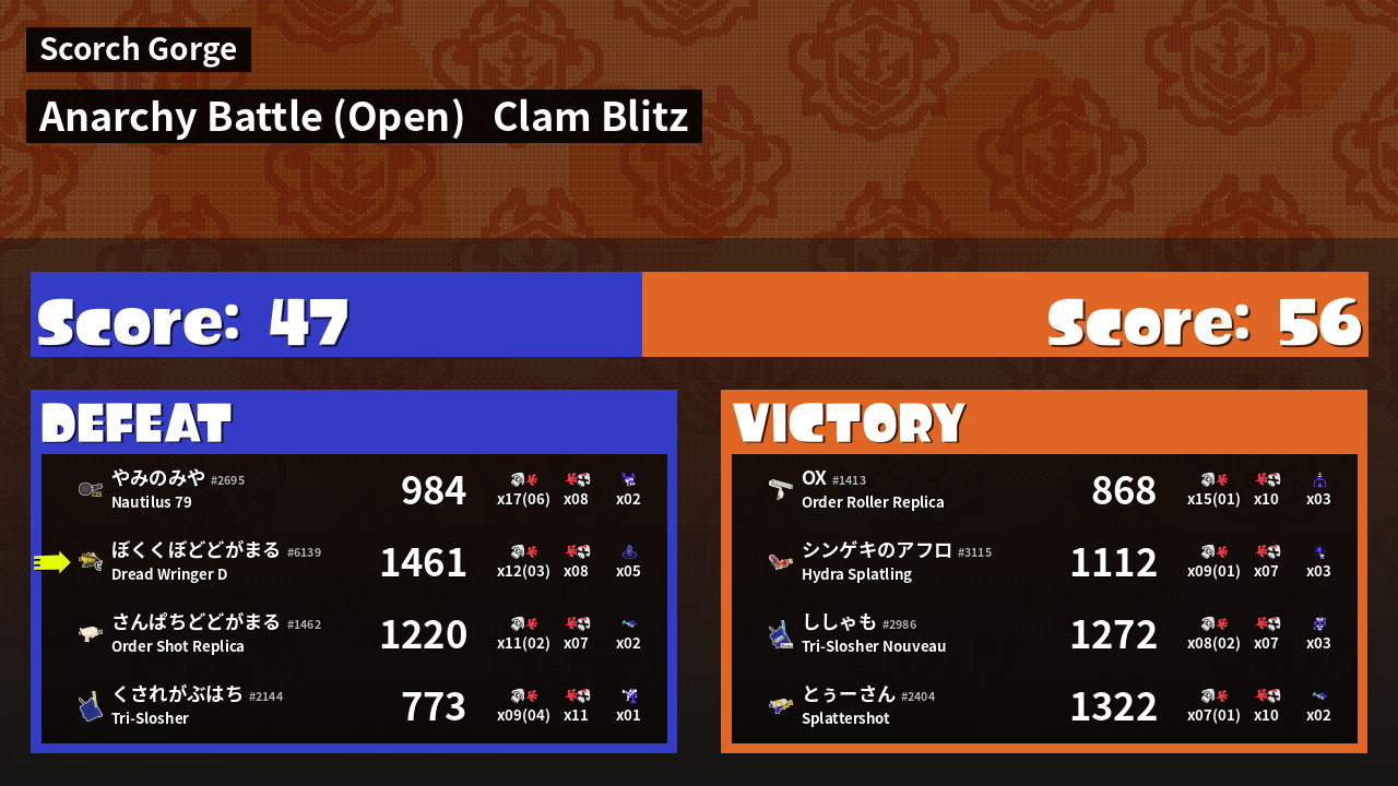 | Mode | Clam Blitz - Anarchy Battle (Open) |