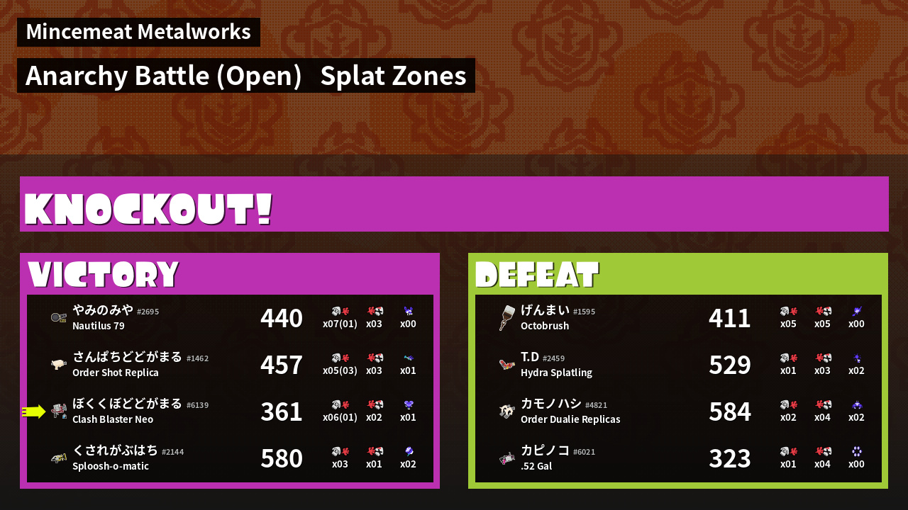 | Mode | Splat Zones - Anarchy Battle (Open) |