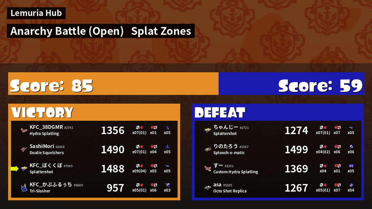 | Mode | Splat Zones - Anarchy Battle (Open) | ||