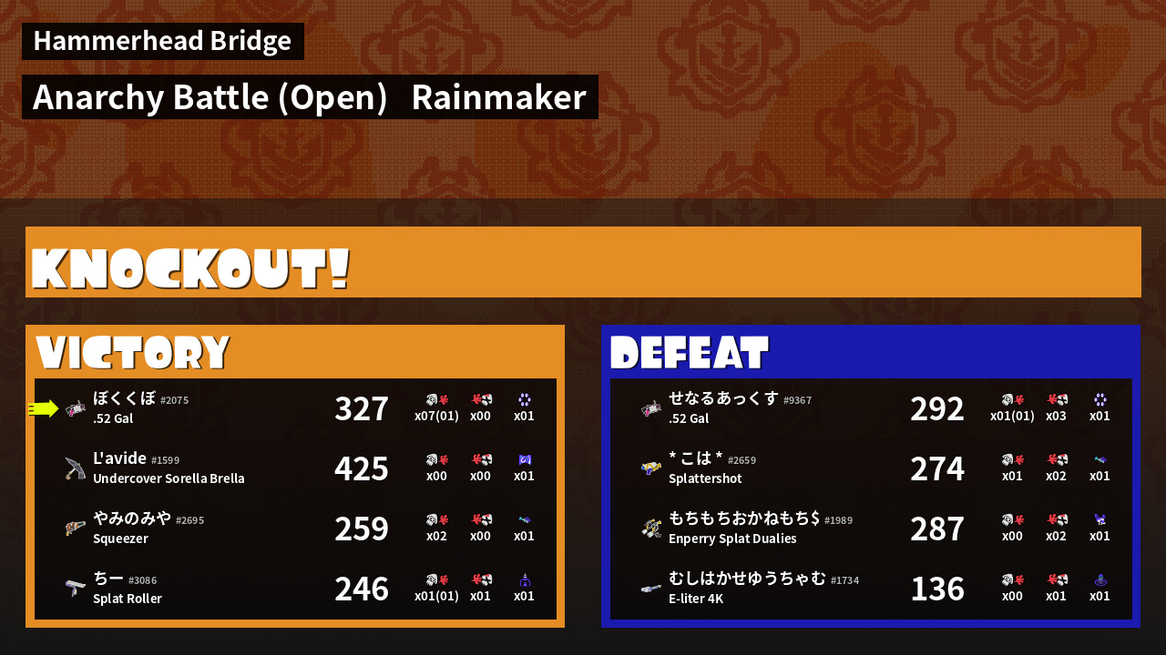 | Mode | Rainmaker - Anarchy Battle (Open) | ||