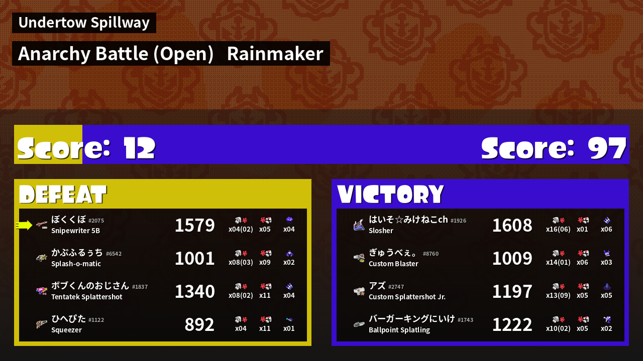| Mode | Rainmaker - Anarchy Battle (Open) | ||