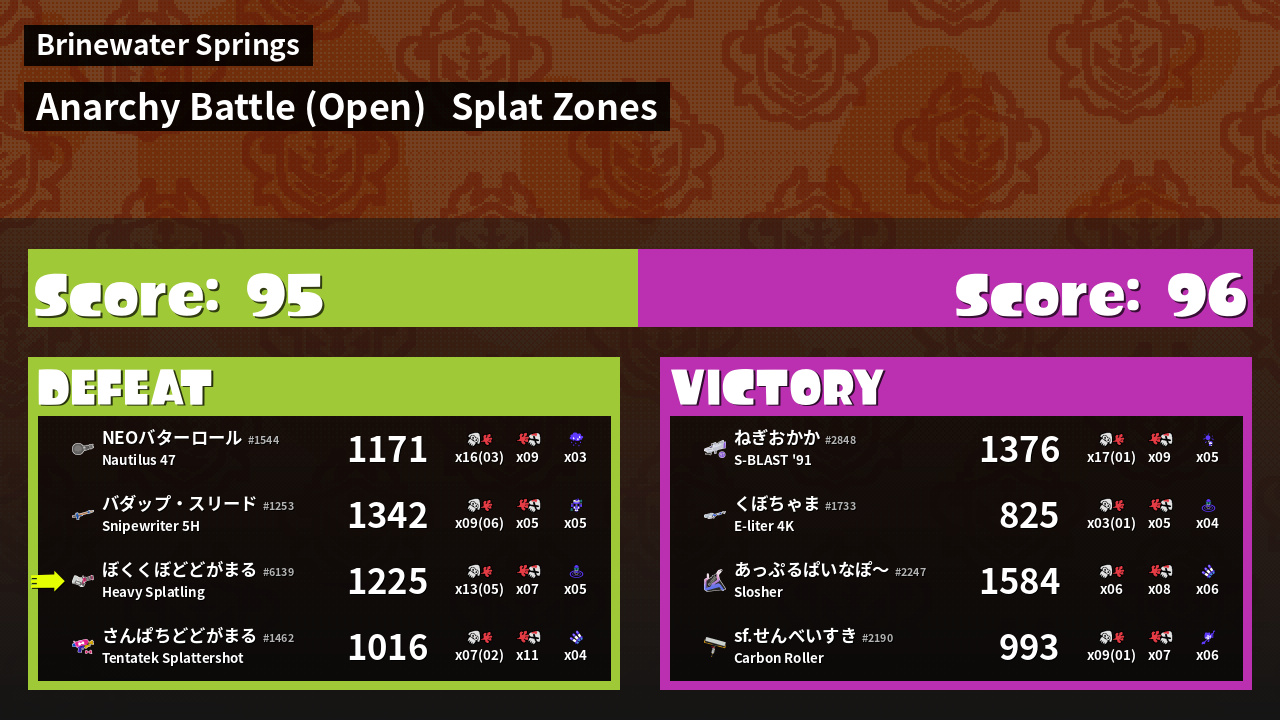 | Mode | Splat Zones - Anarchy Battle (Open) |
