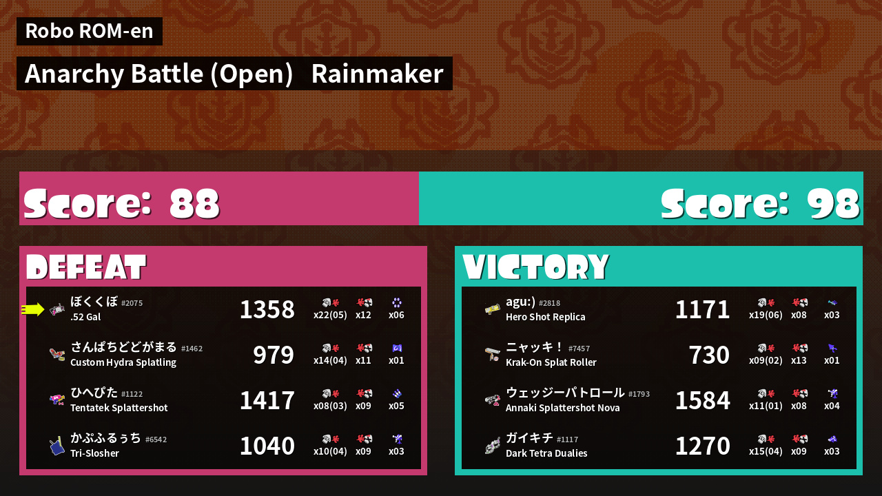 | Mode | Rainmaker - Anarchy Battle (Open) | ||