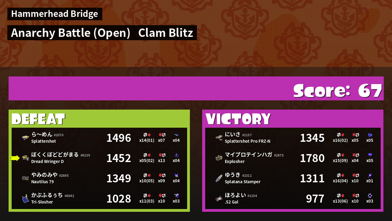| Mode | Clam Blitz - Anarchy Battle (Open) |