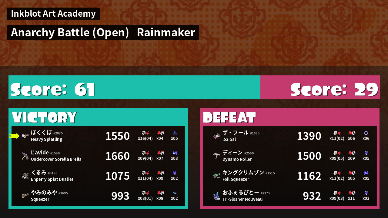 | Mode | Rainmaker - Anarchy Battle (Open) | ||
