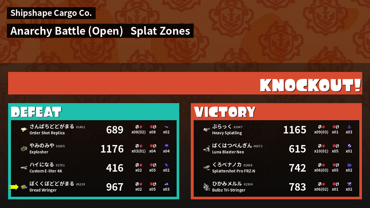 | Mode | Splat Zones - Anarchy Battle (Open) |