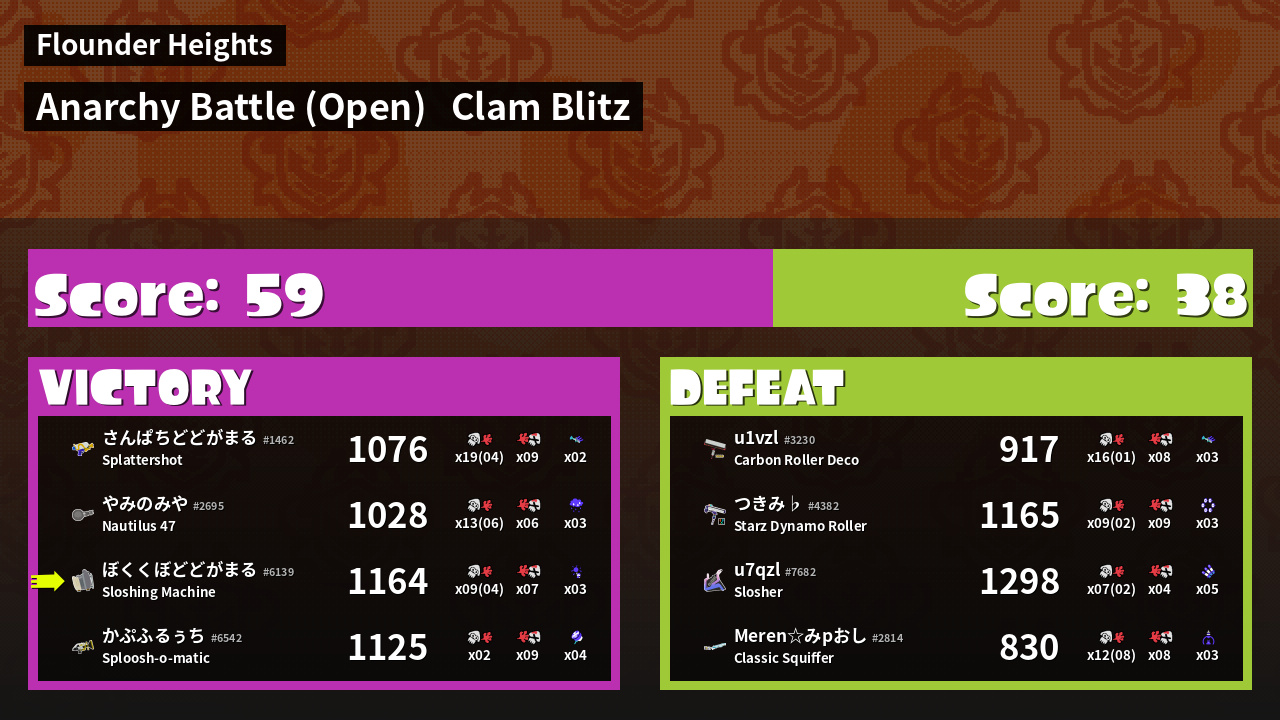 | Mode | Clam Blitz - Anarchy Battle (Open) |