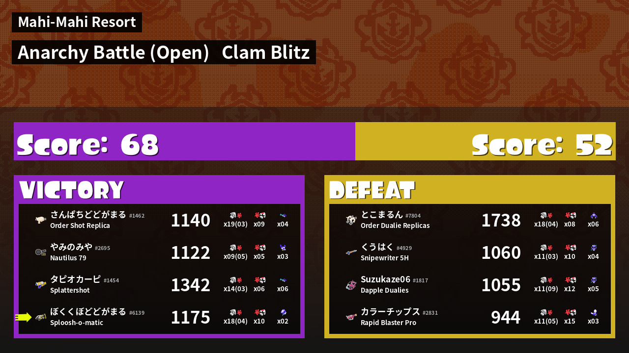 | Mode | Clam Blitz - Anarchy Battle (Open) |