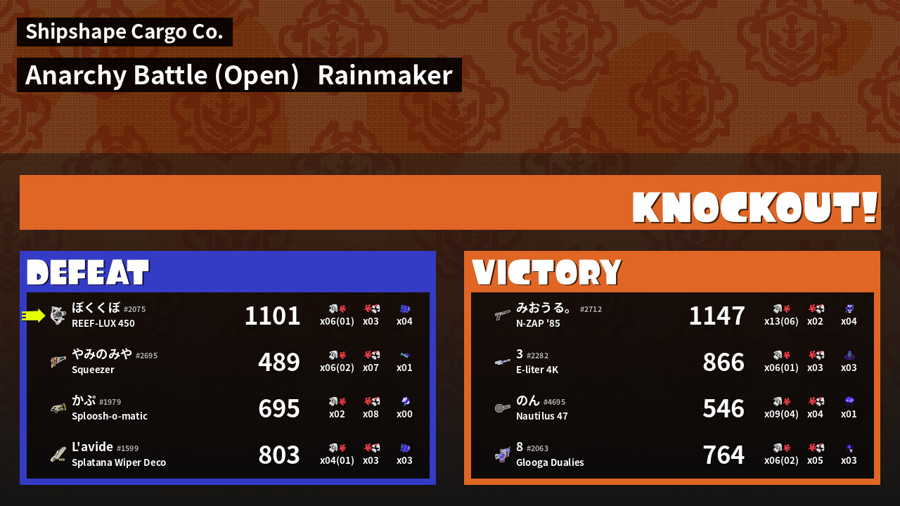 | Mode | Rainmaker - Anarchy Battle (Open) | ||