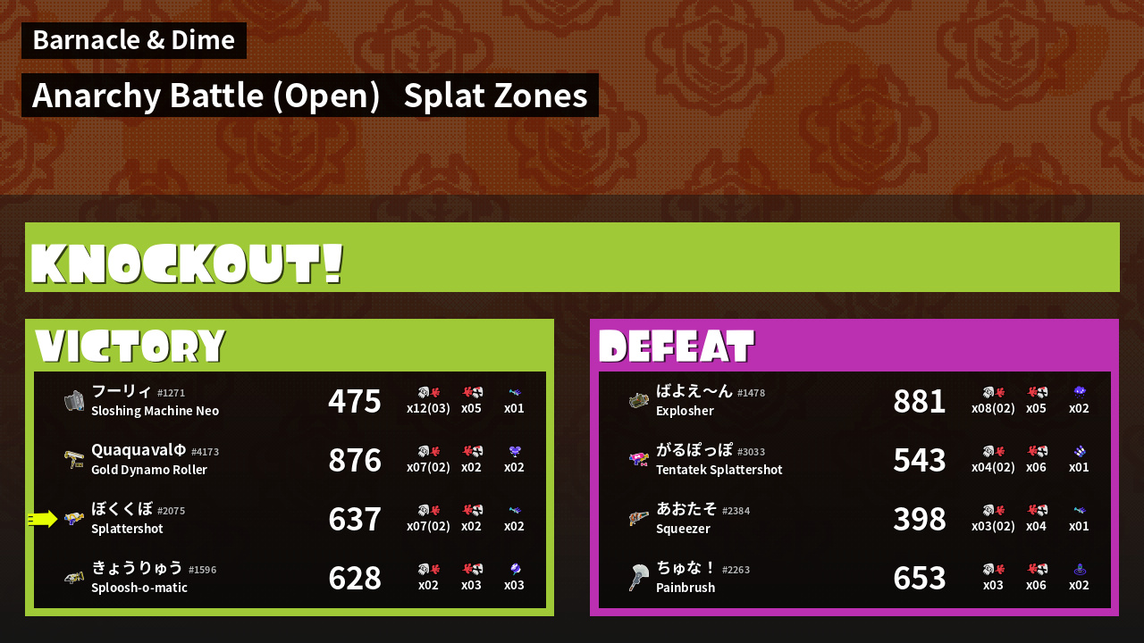 | Mode | Splat Zones - Anarchy Battle (Open) | ||