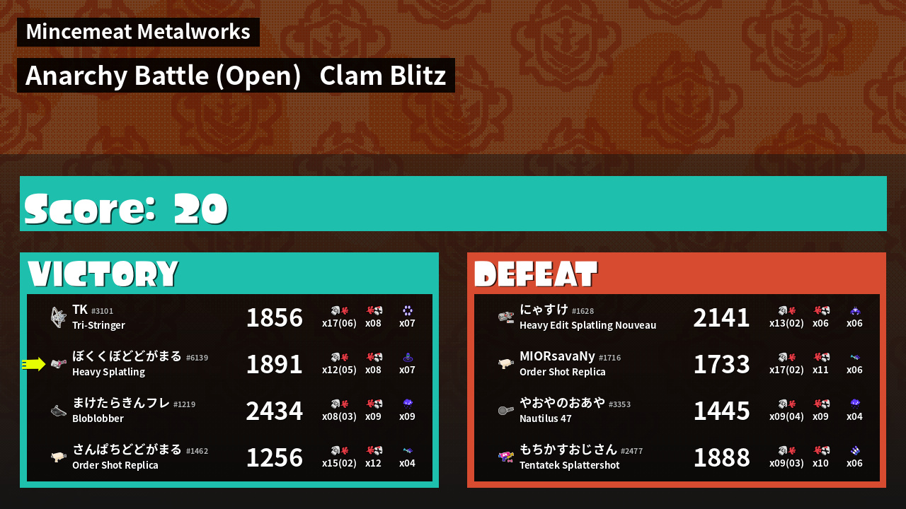 | Mode | Clam Blitz - Anarchy Battle (Open) |