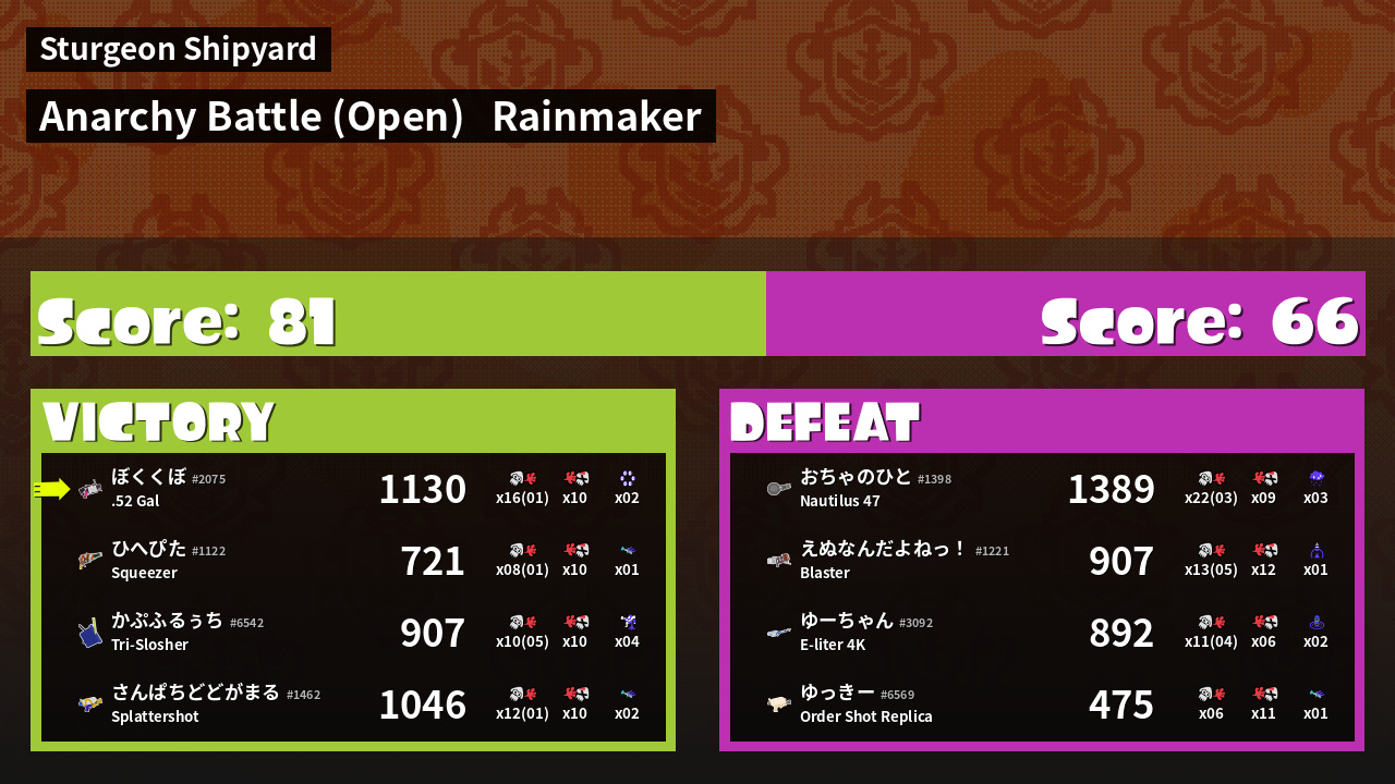 | Mode | Rainmaker - Anarchy Battle (Open) | ||