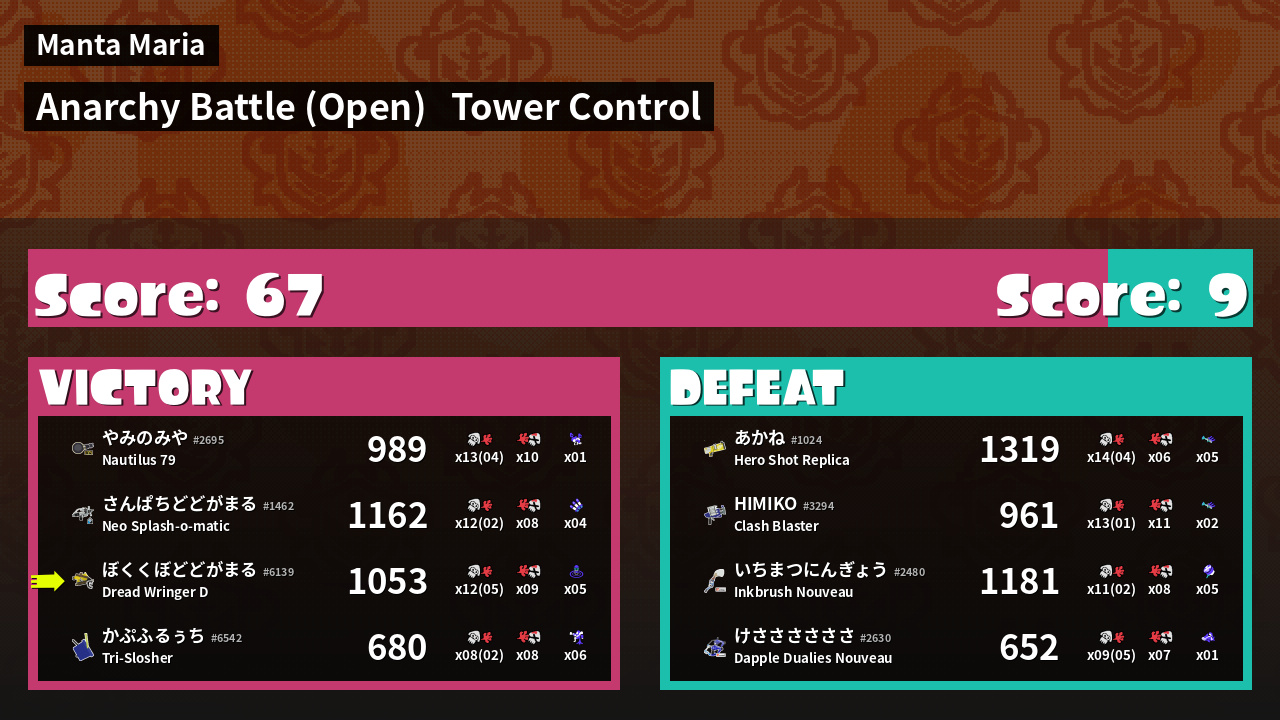 | Medals | #1 Super Jump Spot #1 Splat Assister #1 Tower Stopper |