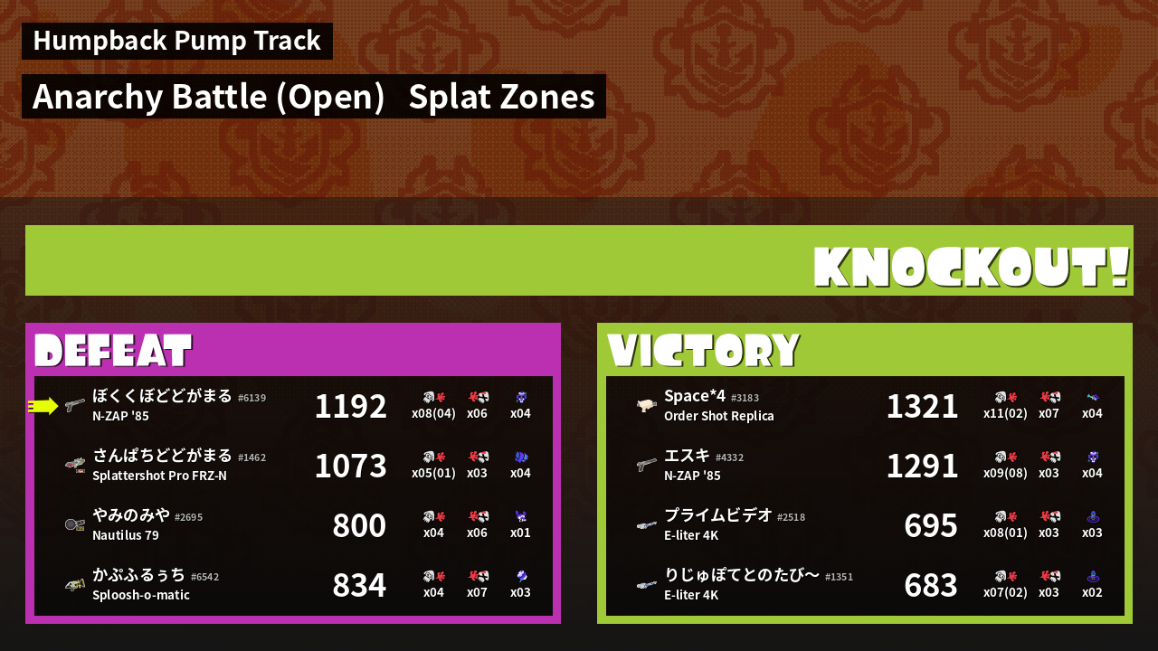 | Mode | Splat Zones - Anarchy Battle (Open) |