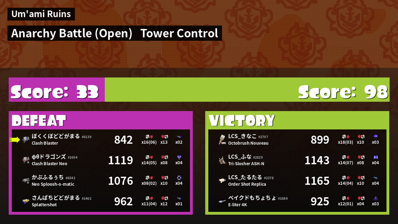 | Mode | Tower Control - Anarchy Battle (Open) |