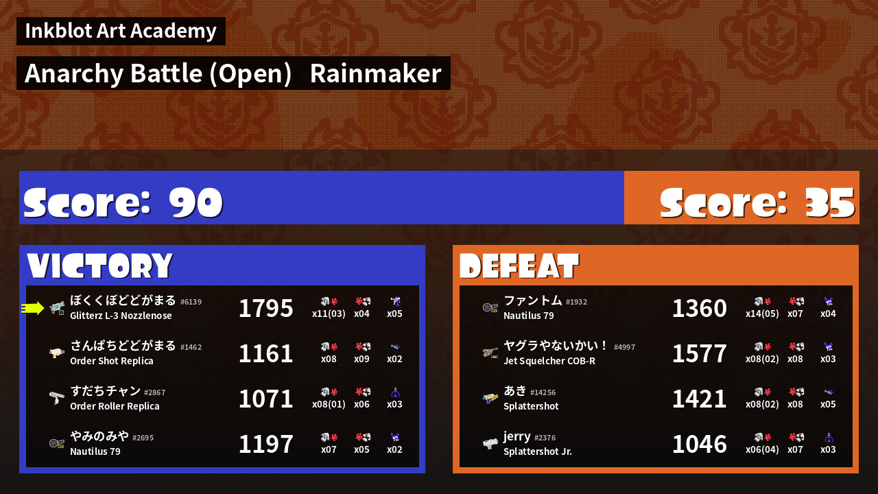 | Mode | Rainmaker - Anarchy Battle (Open) |